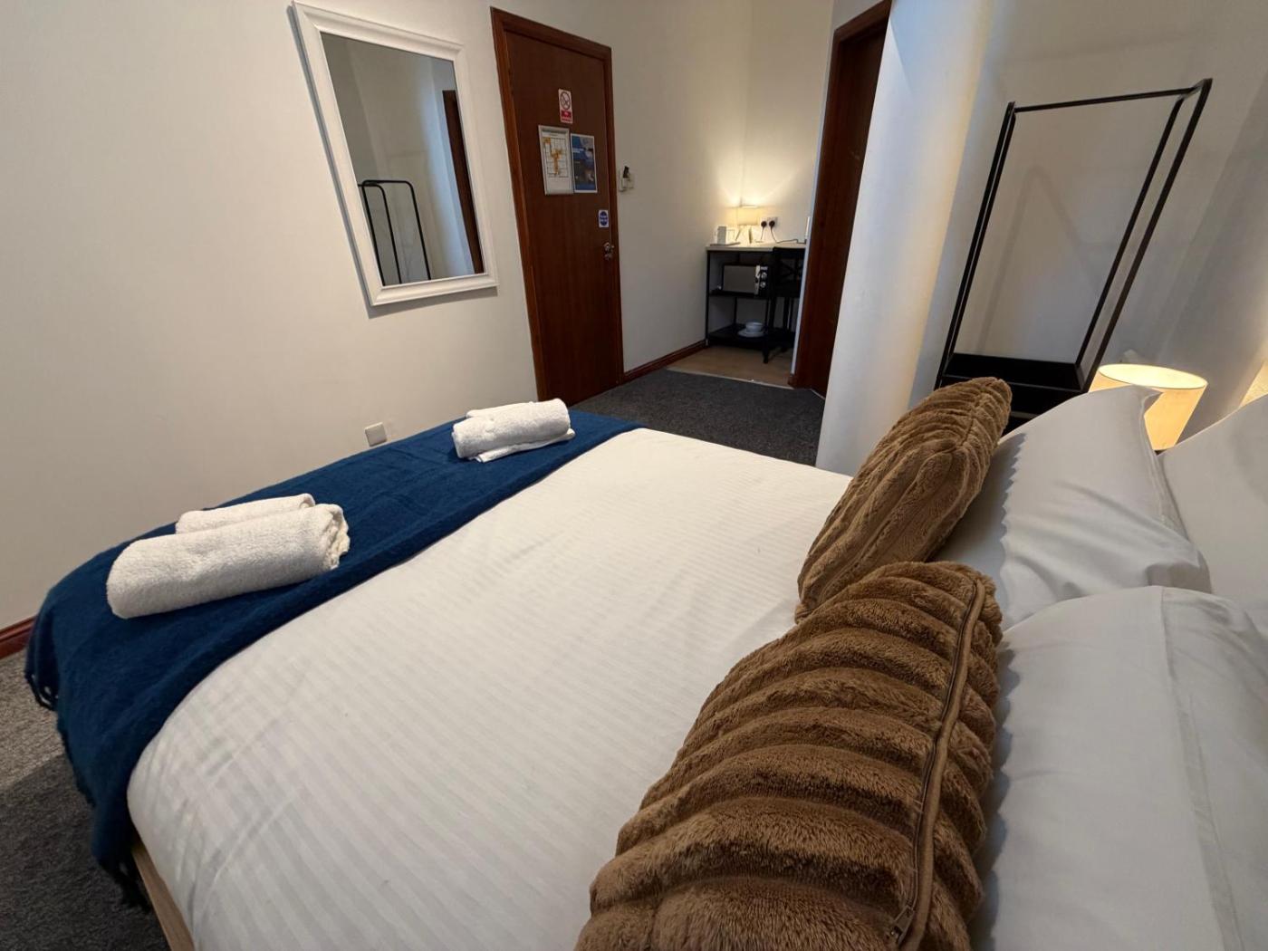 Deluxe Double or Twin Room. The double rooms kitchenette, which features a microwave, is available for cooking and storing food. The double room provides a wardrobe, an electric kettle, as well as a private bathroom featuring a shower and a hairdryer. The unit offers 2 beds. ;