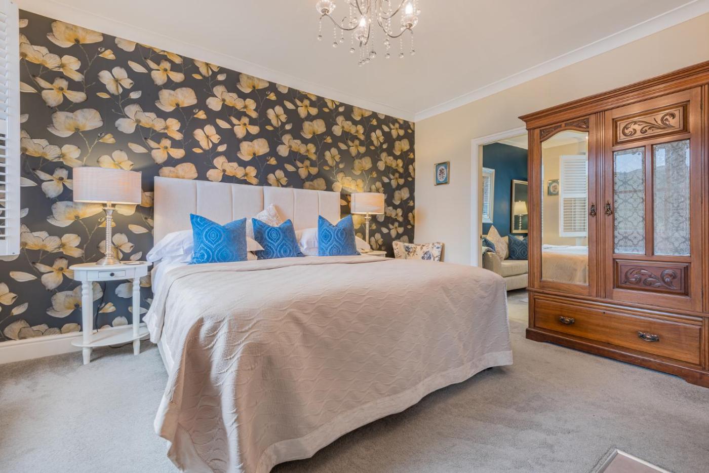 Luxury Super King or Twin Suite. Separate lounge area with comfy 2-seater sofa, blu ray player, dressing table etc. Ensuite shower room and roll top bath in the bedroom. This room is available either as a twin or superking double