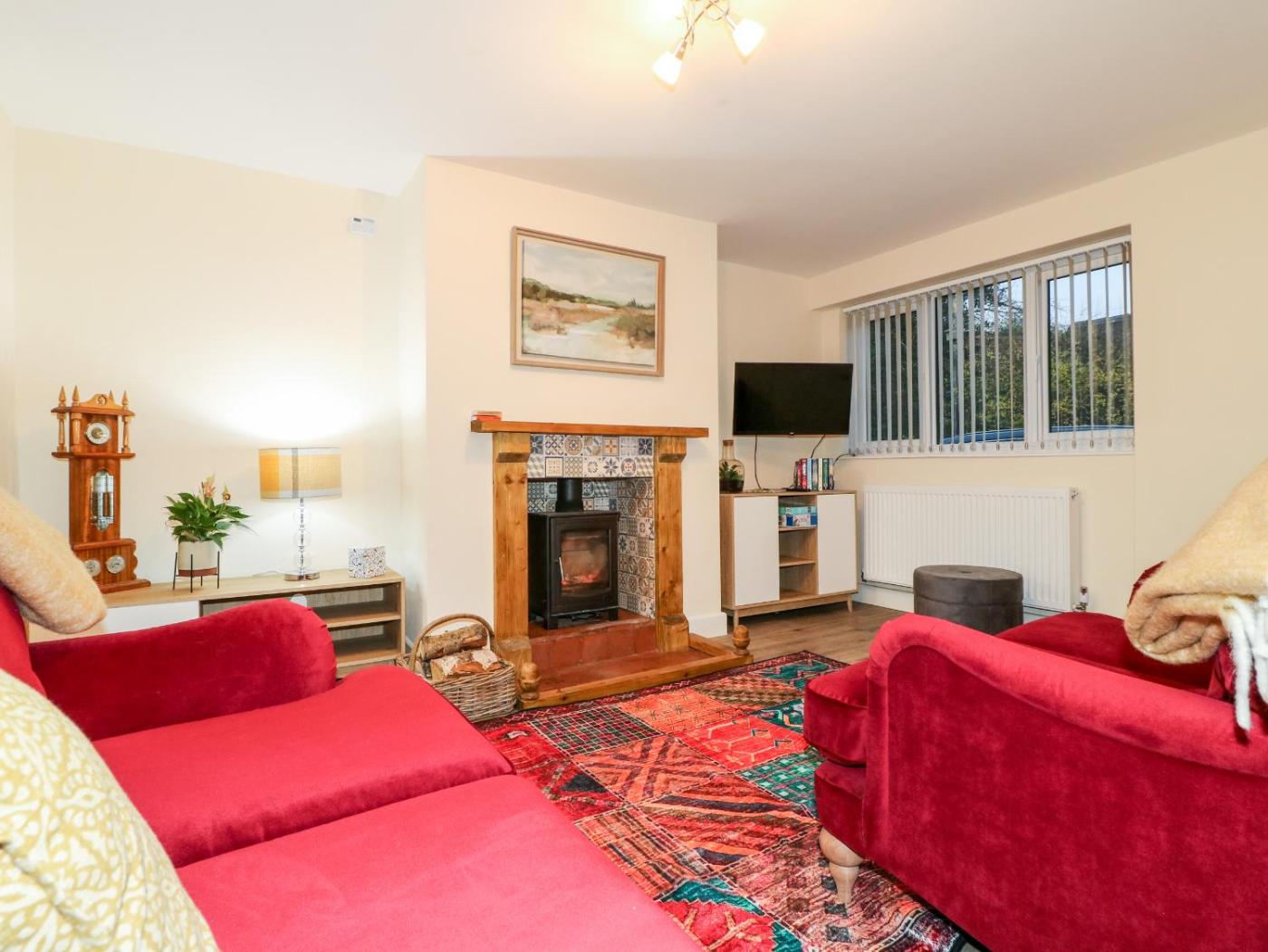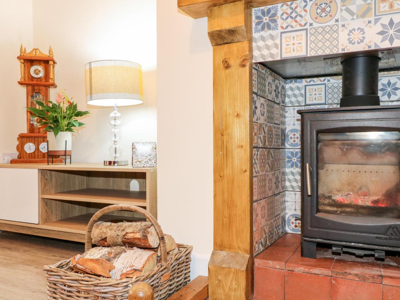 Holiday Home. This holiday homes special feature is the fireplace. This holiday home consists of 2 bedrooms, a seating area with a sofa and 1 bathroom with a walk-in shower. Guests can make meals in the kitchen that is equipped with a stovetop, a refrigerator, a dishwasher and an oven. The holiday home provides a washing machine, a dining area, a wardrobe, an electric kettle and a TV. The unit offers 3 beds.