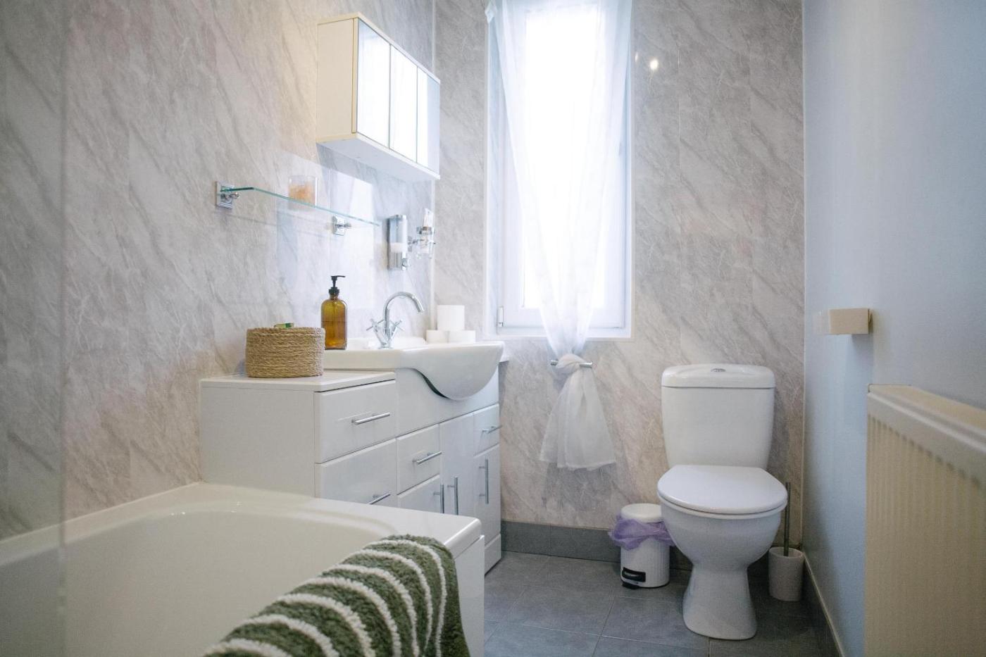 One-Bedroom Apartment. This apartment comes with 1 living room, 1 separate bedroom and 1 bathroom with a bath and free toiletries. In the well-fitted kitchen, guests will find a stovetop, a refrigerator, kitchenware and an oven. The apartment features a washing machine, a tea and coffee maker, a seating area, a flat-screen TV with streaming services, as well as garden views. The unit has 1 bed.