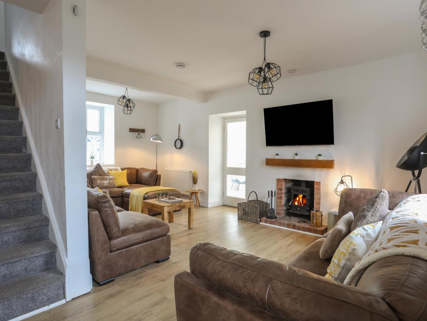 Holiday Home. The hot tub and fireplace are the standout features of this holiday home. This spacious holiday home features 5 bedrooms, a seating area with a sofa and 2 bathrooms with a walk-in shower. In the well-fitted kitchen, guests will find a stovetop, a refrigerator, a dishwasher and an oven. The holiday home features a TV, a washing machine, a dining area, a wardrobe as well as sea views. The unit has 7 beds.