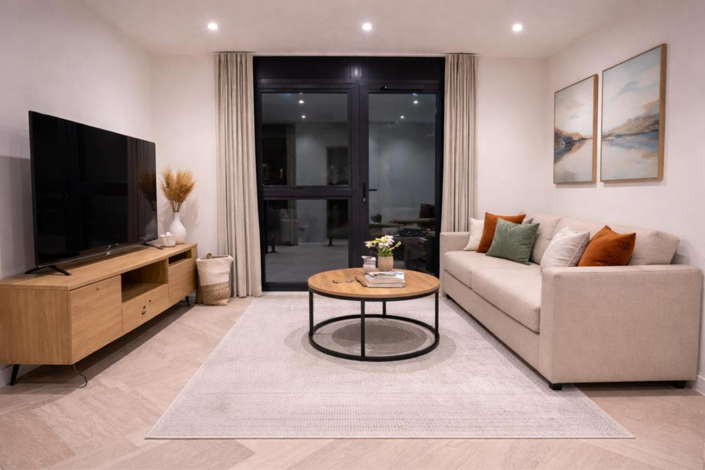 Two-Bedroom Apartment with View. This spacious apartment comprises 1 living room, 2 separate bedrooms and 2 bathrooms with a walk-in shower and free toiletries. The fully equipped kitchen features a stovetop, a refrigerator, a dishwasher and kitchenware. The apartment provides a washing machine, a tea and coffee maker, a seating area, a dining area and a flat-screen TV with streaming services. The unit offers 3 beds.