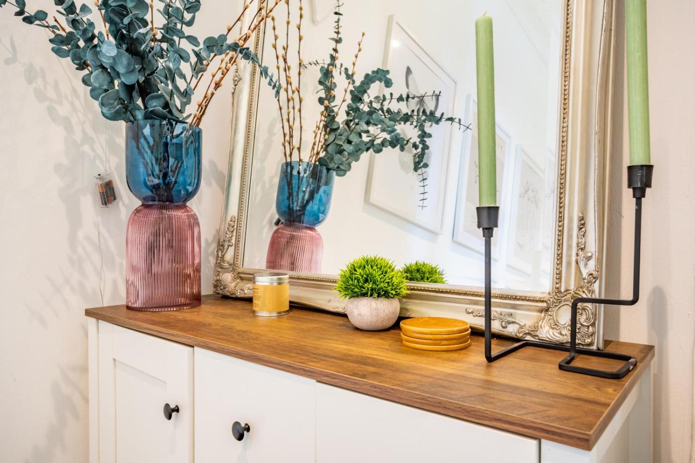 Two-Bedroom Apartment. This apartments standout feature is the fireplace. This spacious apartment is comprised of 1 living room, 2 separate bedrooms and 1 bathroom with a bath and free toiletries. In the well-equipped kitchen, guests will find a refrigerator, a dishwasher, kitchenware and an oven. The apartment offers a flat-screen TV with streaming services, a washing machine, a tea and coffee maker, a seating area as well as garden views. The unit offers 3 beds.