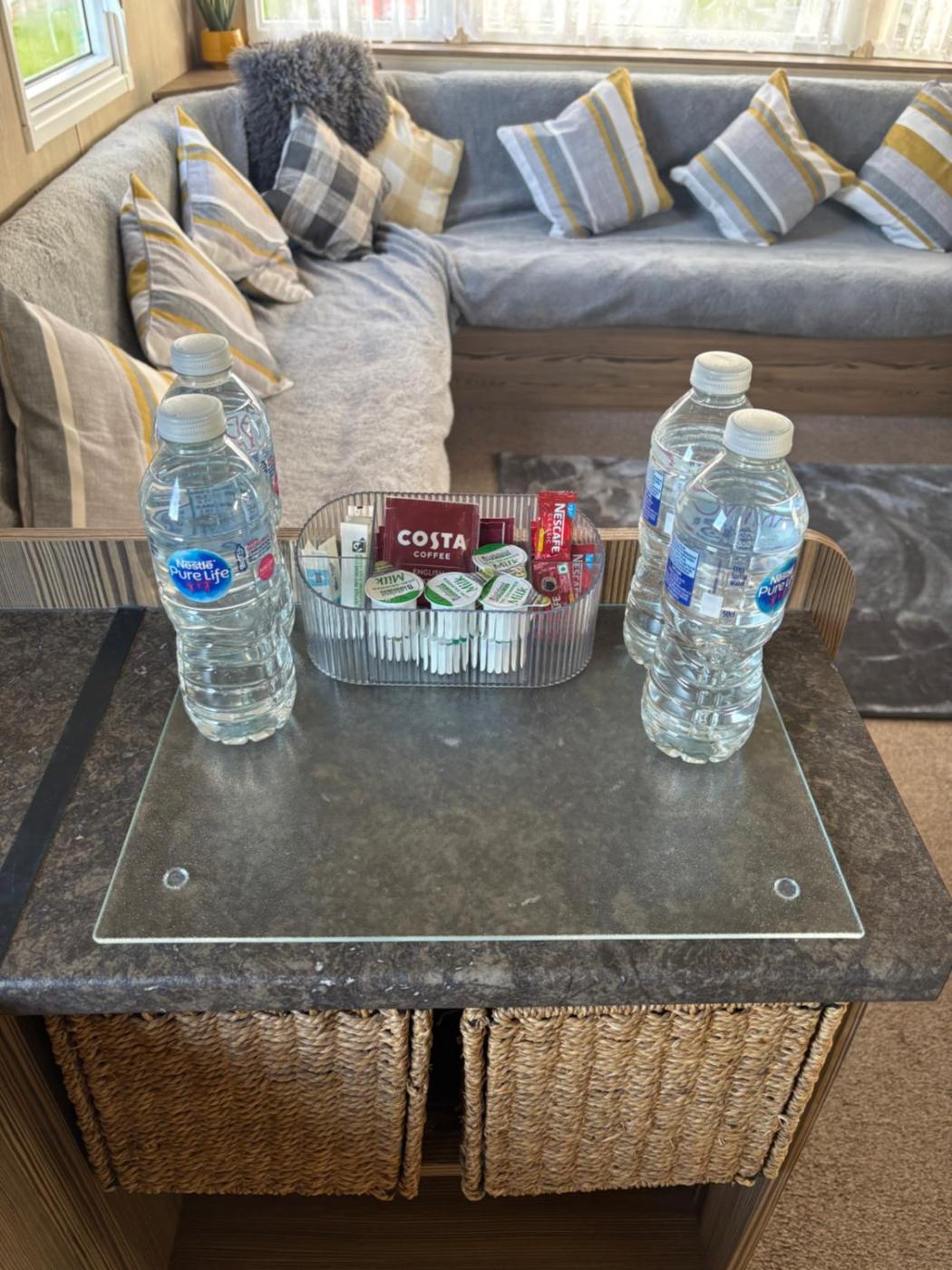 Mobile Home. The fireplace is a top feature of this mobile home. The fully equipped kitchen has a refrigerator, kitchenware, an oven and a microwave. The mobile home offers a tea and coffee maker, a seating area, a dining area, a wardrobe, as well as a flat-screen TV. The unit has 4 beds.