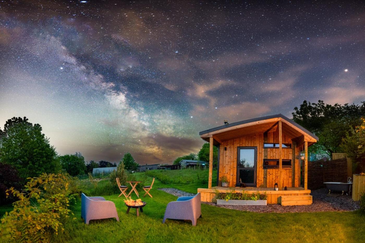 Luxury Glamping Cabin with Outdoor Bath on Cornish Meadow